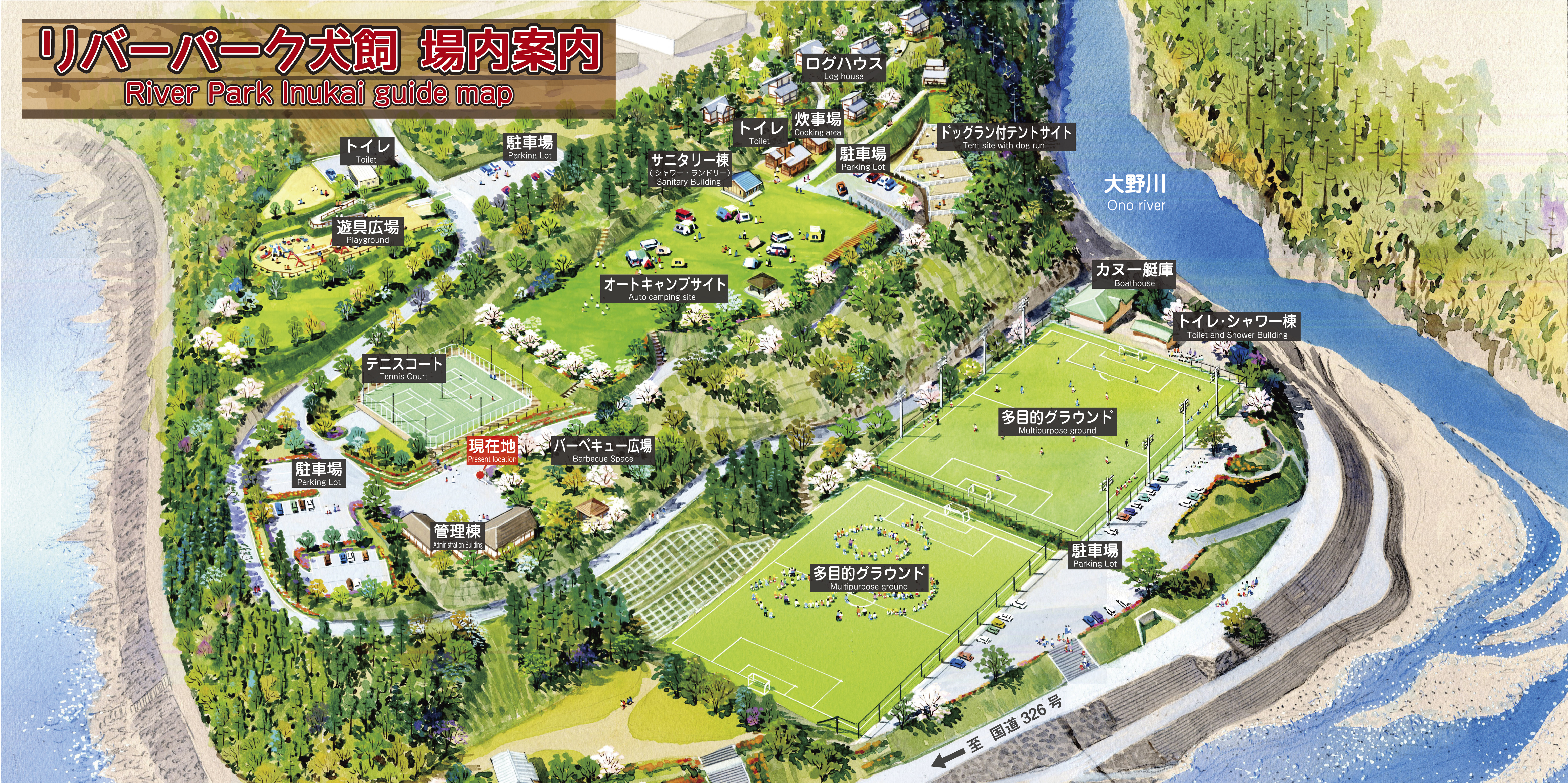 ・キャンプ場内:男子トイレ(温水洋式/1、和式/1、小便器/4)、女子トイレ(温水洋式/2、和式/2)おむつ替え台、多目的トイレ(温水洋式/1)